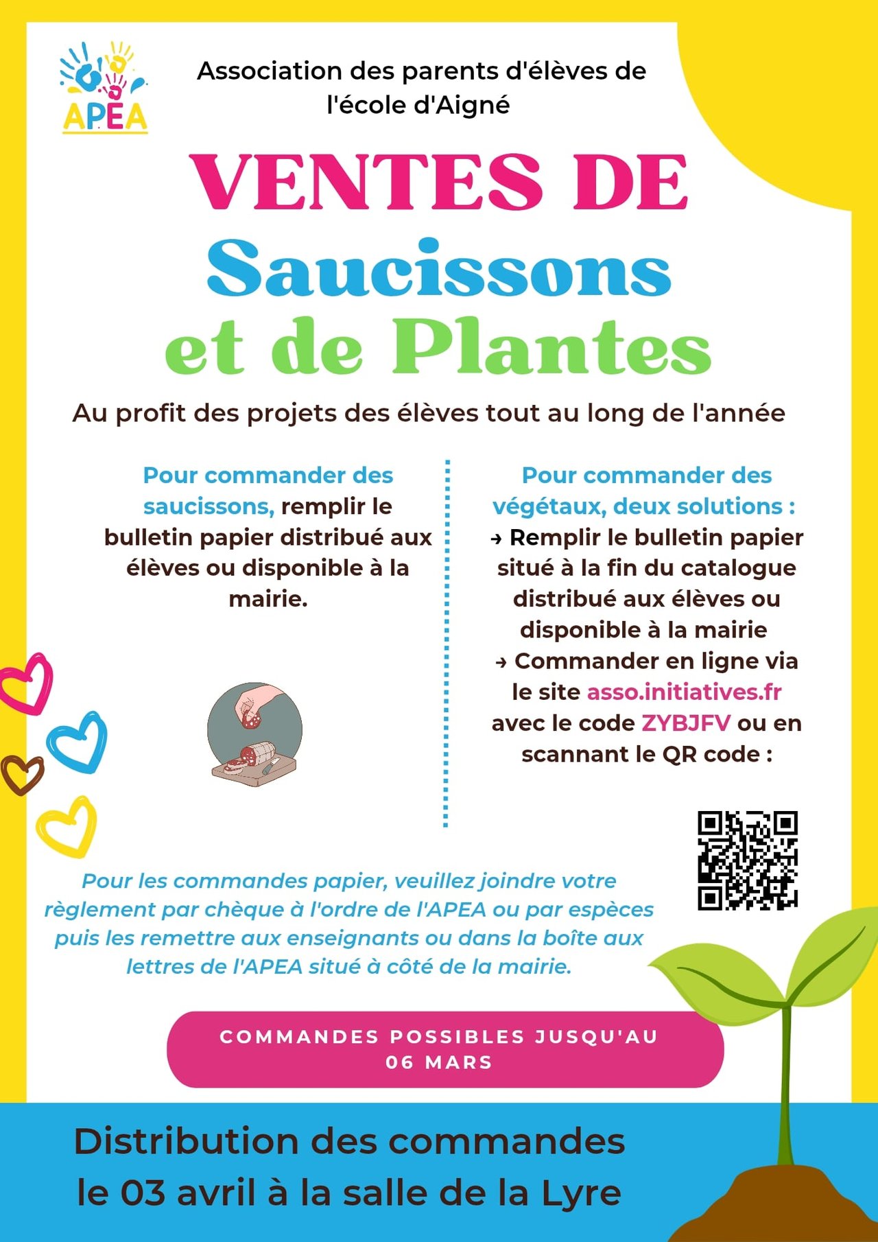 Vous souhaitez commander des saucissons ( bon de commande en mairie) ou des fleurs sur https://asso.initiatives.fr avec le code ZYBJFV, n'hésitez pas! Vous avez jusqu'au 6 mars et les commandes seront remises le 03 avril à la salle de la Lyre.